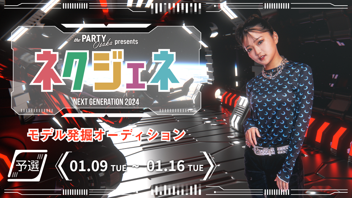 thePARTY presents中高生ネクストジェネレーションモデル発掘ステージ企画 何か夢や目標はありますか?? 「ネクスト・ジェネレーション」は、そんなあなたの夢や理想を叶える場所です!! "thePARTY 2024 OSAKA"にてランウェイを歩いて頂き、夢や希望を持つ中学生・高校生の輝く未来に繋がる企画を行います! →情報社会な現代において、芸能界やユーチューバー等の大阪で眠った才能の持ち主を探し、世の中に大きな影響力を与えるイベントを立ち上げます!