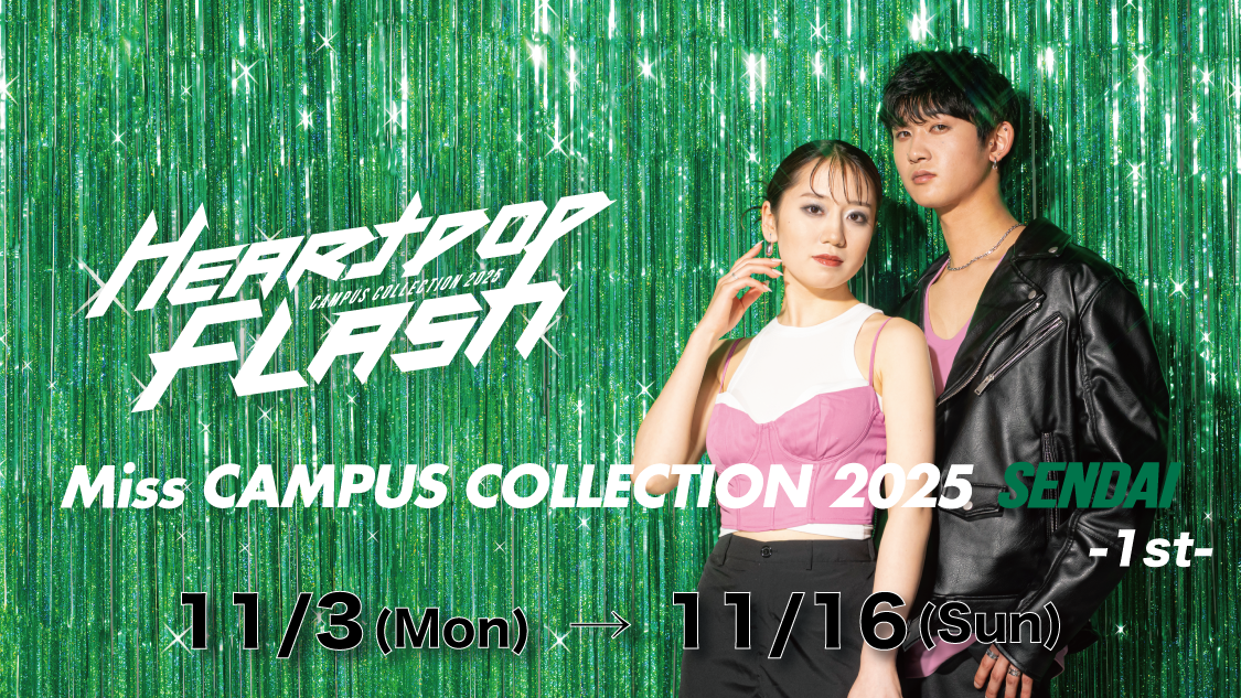 Miss CAMPUS COLLECTIONとは? ikko masuda 完全プロデュースの元、 “女の子が憧れる女の子“をコンセプトに、 ファイナリストと共に、憧れと感動をクリエイトするコンテンツです。 宮城中の女子の中から応募を集め、 オーディション・審査を経てファイナリストを選定し、 CAMPUS COLLECTION 2025のステージにて Miss CAMPUS COLLECTIONグランプリが決定します。 果たして、新たな価値を創造していく今回のMiss CAMPUS COLLECTIONで最も自分らしく輝き、グランプリの座を手にするのは誰になるのかー。 審査員票、WEB票(YELL VOTE)、LIVE票(ミクチャ)など、 その他、SNS投稿内容や意欲などの総合評価で 2025年度のMiss CAMPUS COLLECTION KYOTOグランプリが決まります。